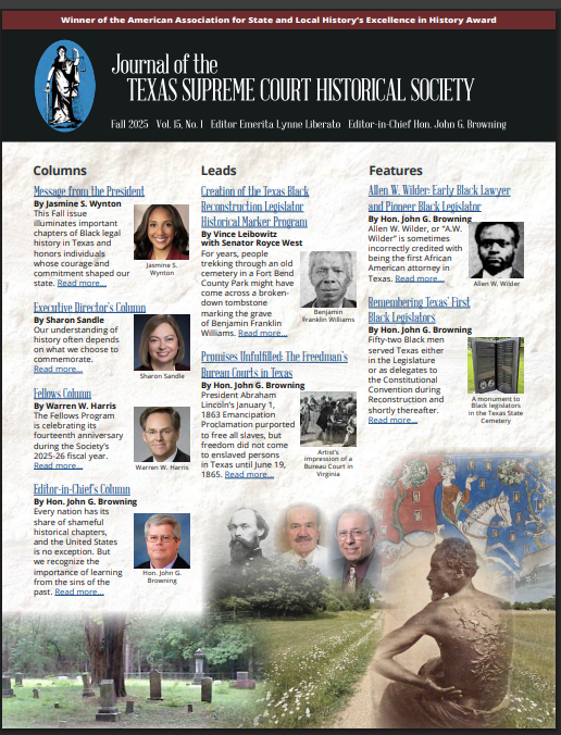 In this issue we feature articles that provide insight into some of the frequently overlooked stories of Reconstruction in Texas and the nascent days of the struggle for civil rights.